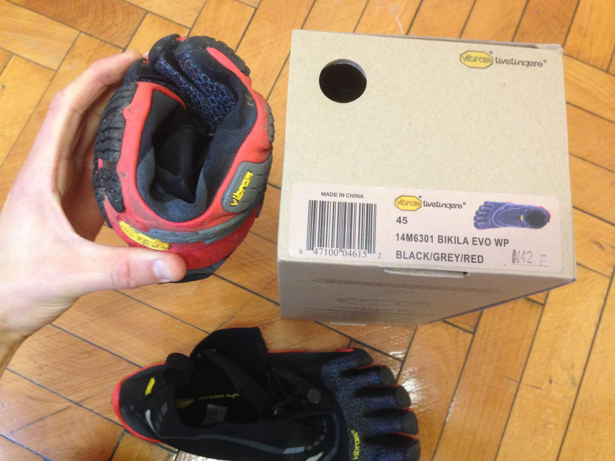I am commonly between sizes in Vibrams. I am right at the threshold with most Vibram models: Size 44 in KSO Evo, Trek Sport, CVT LS, Lontra – but am a size 45 in the Spyridon. I am a size 45 in the Bikila Evo WP too. I figured sizing-up would be a wise move anyway, given that the Bikila Evo WP is designed for more wintery conditions, and I will likely be wearing toe socks underneath.